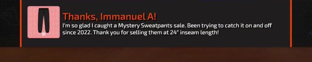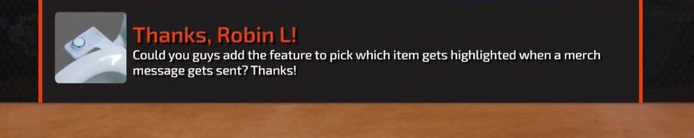 Thanks, Robin L! Could you guys add the feature to pick which item gets highlighted when a merch message gets sent? Thanks!