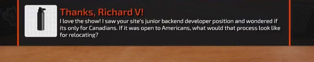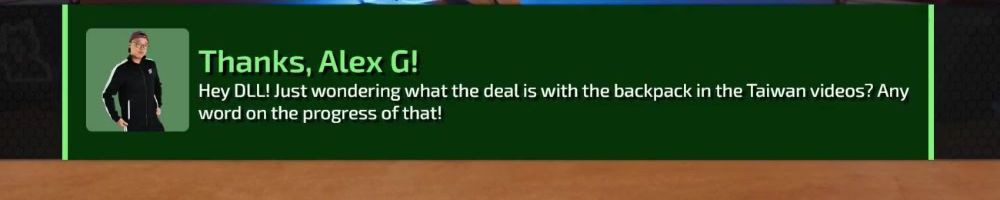 Thanks, Alex G! Hey DLL! Just wondering what the deal is with the backpack in the Taiwan videos? Any word on the progress of that!