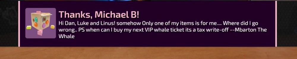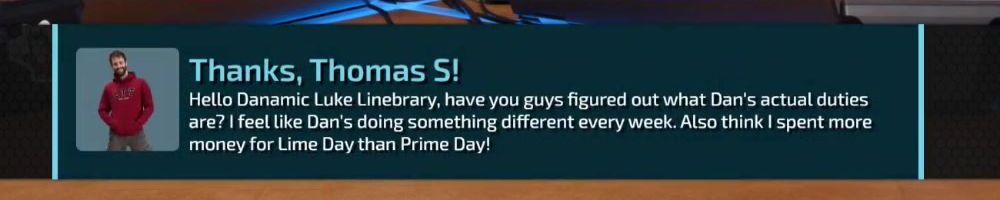 Long time watcher. First time purchaser. Could you try and work more fun and