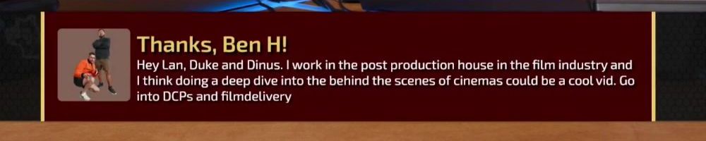 I think doing a deep dive into the behind the scenes of cinemas could be a cool vid. Go