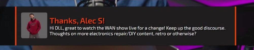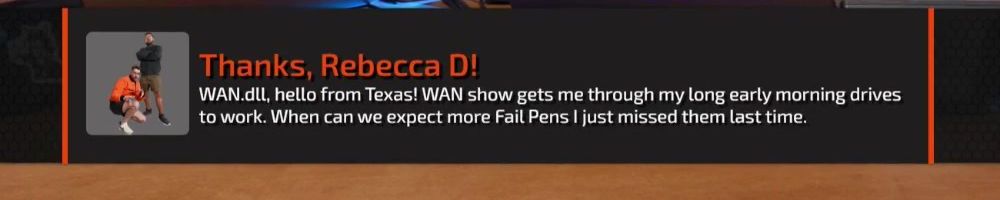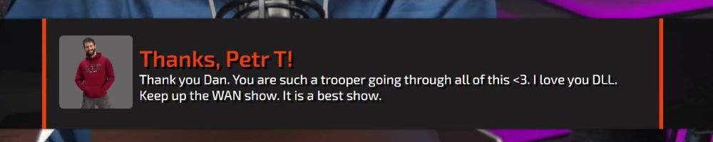 Hint: Use CTRL + F to search messages in this show, or use Whenplane's WAN Show Search tool to search for messages in all shows.