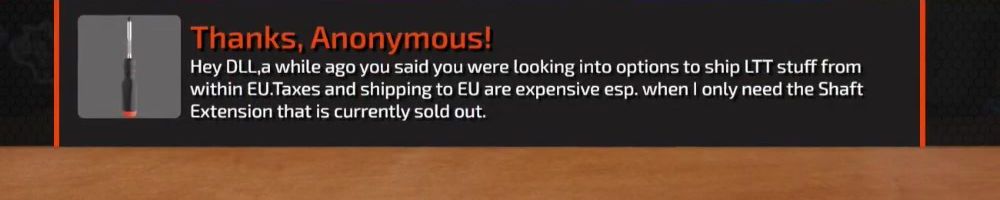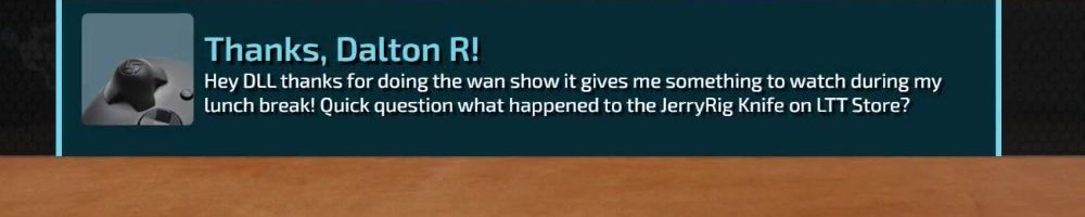 Hey DLL thanks for doing the wan show it gives me something to watch during my lunch break! Quick question what happened to the JerryRig Knife on LTT Store?