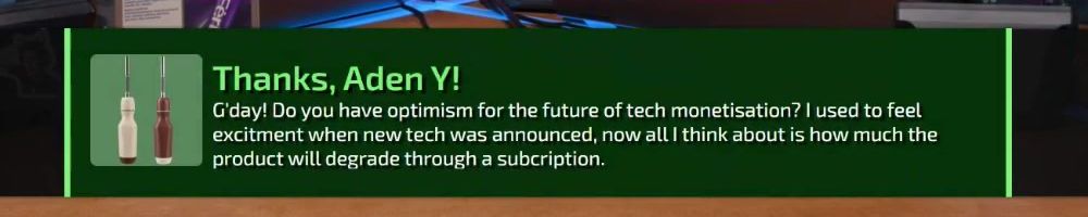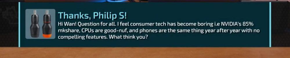 What do you think the next type of tech what will see a lot of improvement over a short period of time. Like how monitor tech improved dramatically within the last few years