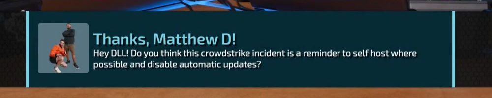 Hey DLL, thanks for restocking my home and work closet! Luke, how do you expect issues like this Crowdstrike outage will change software development?