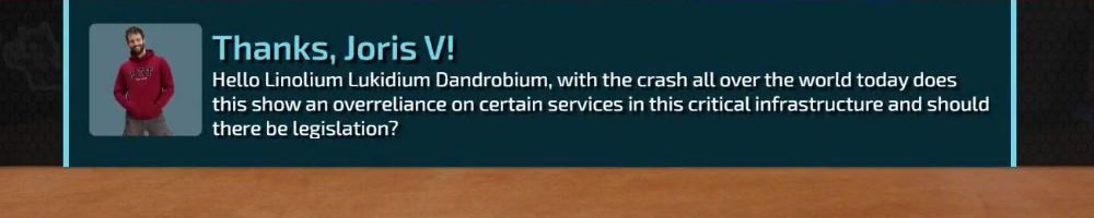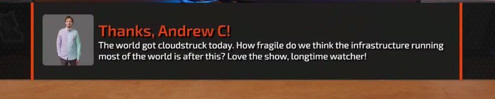 The world got cloudstruck today. How fragile do we think the infrastructure running most of the world is after this? Love the show, longtime watcher!