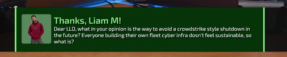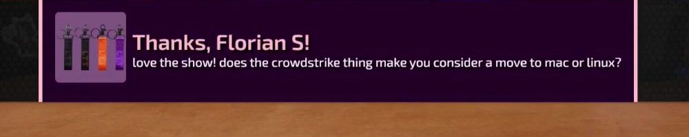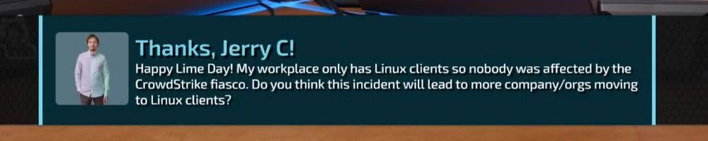 Happy Lime Day! My workplace only has Linux clients so nobody was affected by the CrowdStrike fiasco. Do you think this incident will lead to more company/orgs moving to Linux clients?