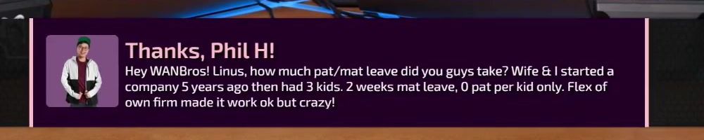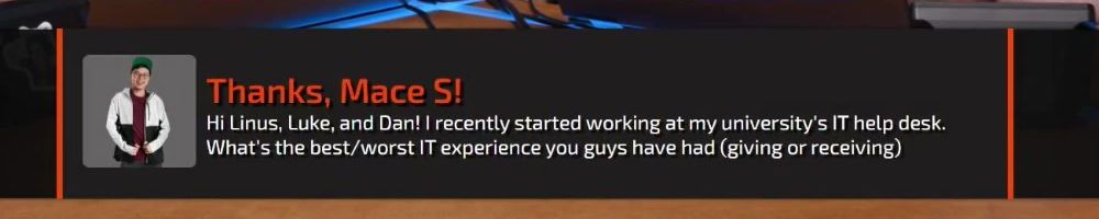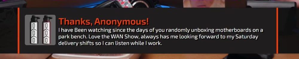 I have Been watching since the days of you randomly unboxing motherboards on a park bench. Love the WAN Show, always has me looking forward to my Saturday delivery shifts so I can listen while I work.