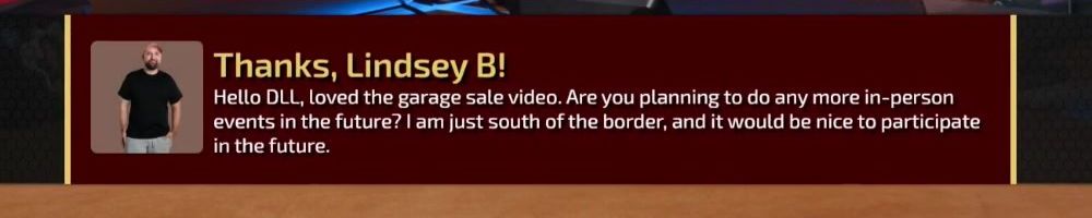 Hello DLL, loved the garage sale video. Are you planning to do any more in-person events in the future? I am just south of the border, and it would be nice to participate in the future.