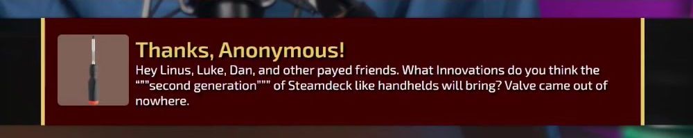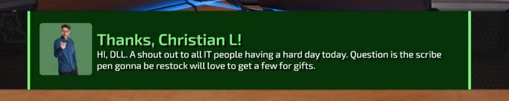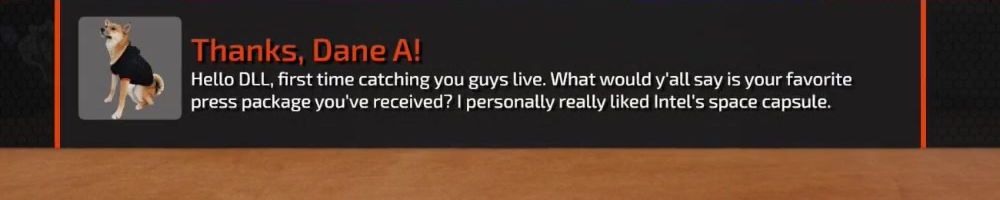 Hello DLL, first time catching you guys live. What would y'all say is your favorite press package you've received? I personally really liked Intel's space capsule.