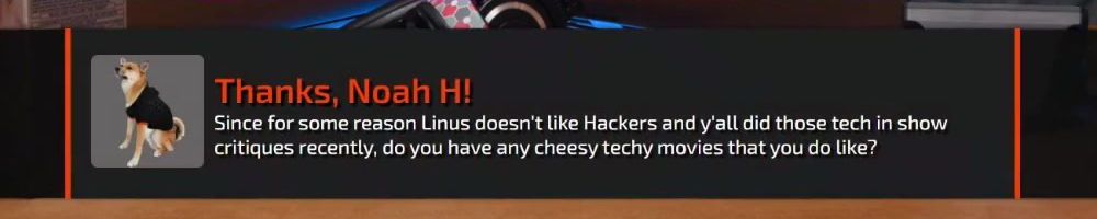 Since for some reason Linus doesn't like Hackers and y'all did those tech in show critiques recently, do you have any cheesy techy movies that you do like?