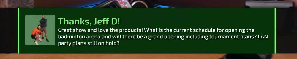 Great show and love the products! What is the current schedule for opening the badminton arena and will there be a grand opening including tournament plans? LAN party plans still on hold?