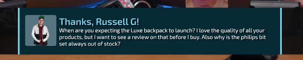 When are you expecting the Luxe backpack to launch? I love the quality of all your products, but I want to see a review on that before I buy. Also why is the philips bit set always out of stock?