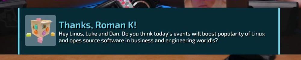 Hey Linus, Luke and Dan. Do you think today's events will boost popularity of Linux and opes source software in business and engineering world's?