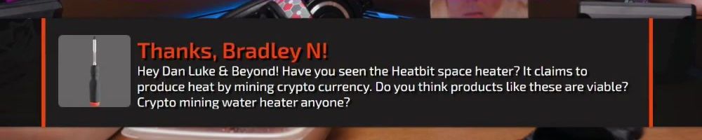 Hey Dan Luke & Beyond! Have you seen the Heatbit space heater? It claims to produce heat by mining crypto currency. Do you think products like these are viable? Crypto mining water heater anyone?