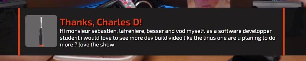 Hi monsieur sebastien, lafreniere, besser and vod myself. as a software developper student i would love to see more dev build video like the linus one are u planing to do more ? love the show