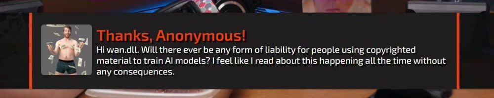 Hi wan.dll. Will there ever be any form of liability for people using copyrighted material to train AI models? I feel like I read about this happening all the time without any consequences.