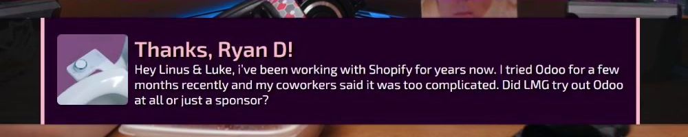 Hey Linus & Luke, i've been working with Shopify for years now. I tried Odoo for a few months recently and my coworkers said it was too complicated. Did LMG try out Odoo at all or just a sponsor?