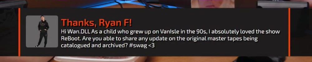 Hi Wan.DLL As a child who grew up on Vanisle in the 90s, I absolutely loved the show ReBoot. Are you able to share any update on the original master tapes being catalogued and archived? #swag <3