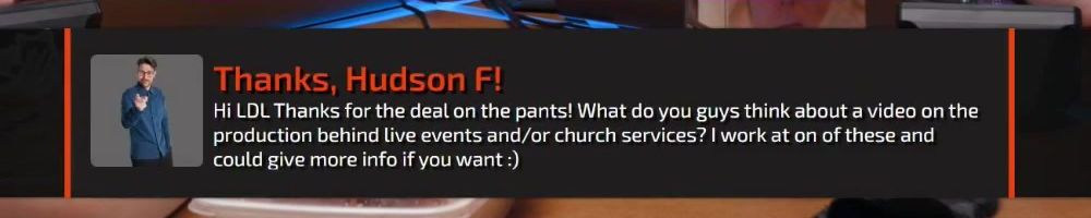 Hi LDL Thanks for the deal on the pants! What do you guys think about a video on the production behind live events and/or church services? I work at one of these and could give more info if you want :)