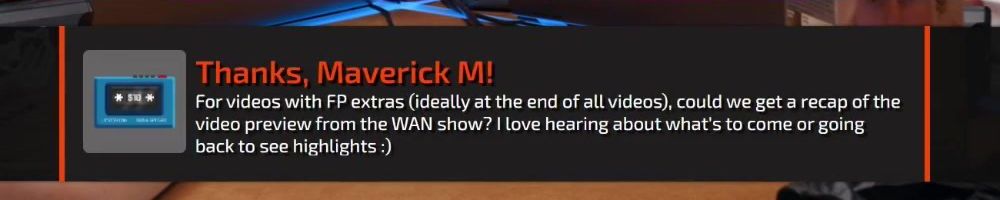 For videos with FP extras (ideally at the end of all videos), could we get a recap of the
