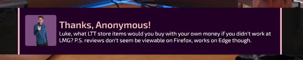 LMG? P.S. reviews don't seem be viewable on Firefox, works on Edge though.