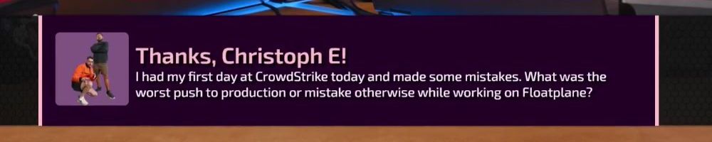 I had my first day at CrowdStrike today and made some mistakes. What was the worst push to production or mistake otherwise while working on Floatplane?