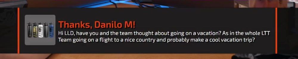 Hi LLD, have you and the team thought about going on a vacation? As in the whole LTT Team going on a flight to a nice country and probably make a cool vacation trip?