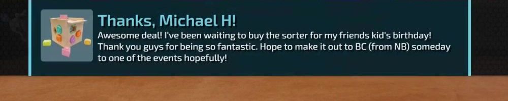 Awesome deal! I've been waiting to buy the sorter for my friends kid's birthday! Thank you guys for being so fantastic. Hope to make it out to BC (from NB) someday to one of the events hopefully!