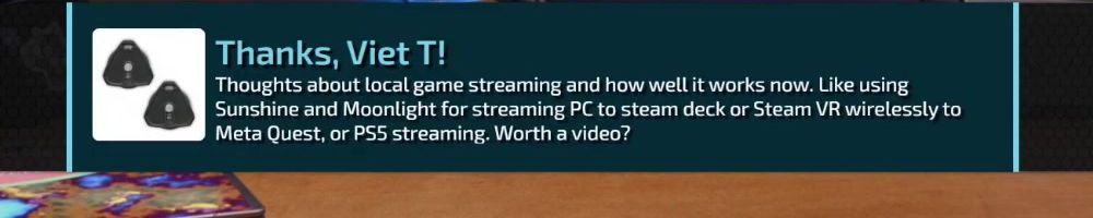 Thoughts about local game streaming and how well it works now. Like using Sunshine and Moonlight for streaming PC to steam deck or Steam VR wirelessly to Meta Quest, or PS5 streaming. Worth a video?
