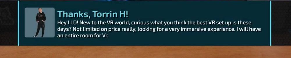 Hey LLD! New to the VR world, curious what you think the best VR set up is these days? Not limited on price really, looking for a very immersive experience. I will have an entire room for Vr.