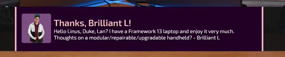 Hello Linus, Duke, Lan? I have a Framework 13 laptop and enjoy it very much.