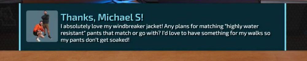 I absolutely love my windbreaker jacket! Any plans for matching "highly water resistant" pants that match or go with? I'd love to have something for my walks so my pants don't get soaked!