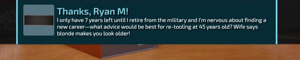 I only have 7 years left until I retire from the military and I'm nervous about finding a new career—what advice would be best for re-tooling at 45 years old? Wife says blonde makes you look older!
