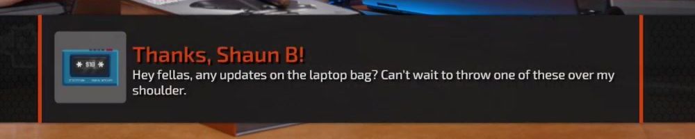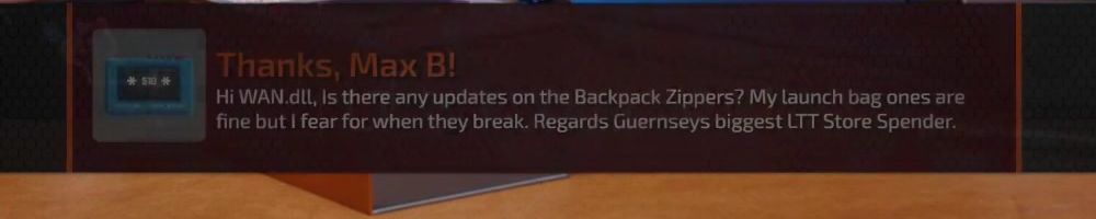 Hi WAN.dll, is there any updates on the Backpack Zippers? My launch bag ones are fine but I fear for when they break. Regards Guernseys biggest LTT Store Spender.