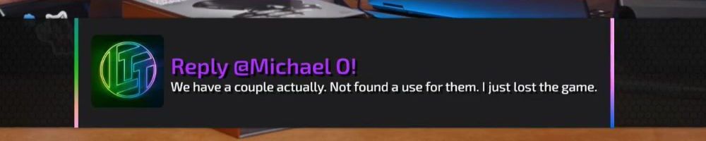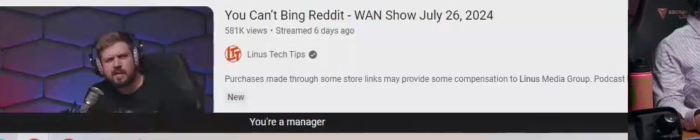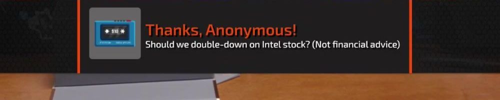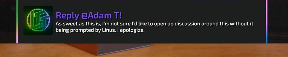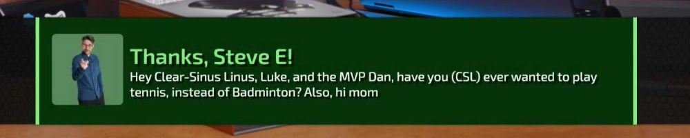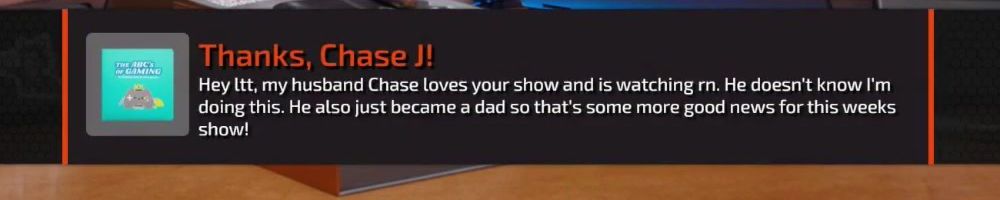 Hey ltt, my husband Chase loves your show and is watching rn. He doesn't know I'm doing this. He also just became a dad so that's some more good news for this weeks show!
