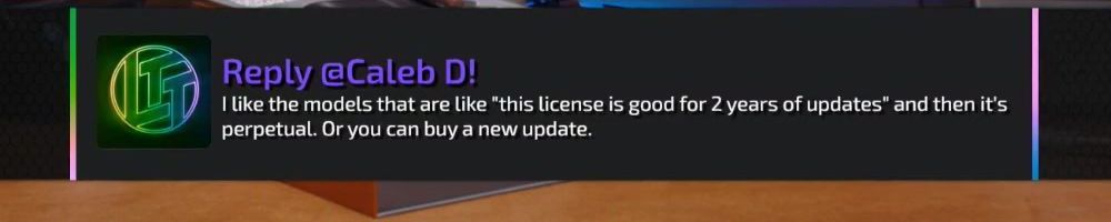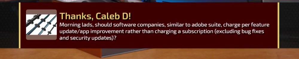 Morning lads, should software companies, similar to adobe suite, charge per feature update/app improvement rather than charging a subscription (excluding bug fixes and security updates)?