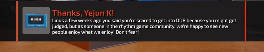 Linus a few weeks ago you said you're scared to get into DDR because you might get judged, but as someone in the rhythm game community, we're happy to see new people enjoy what we enjoy! Don't fear!