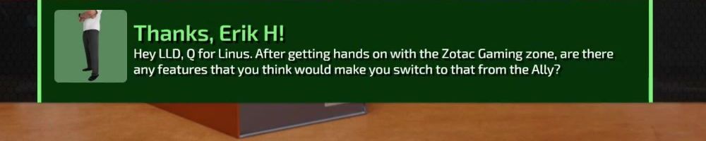 Hey LLD, Q for Linus. After getting hands on with the Zotac Gaming zone, are there any features that you think would make you switch to that from the Ally?