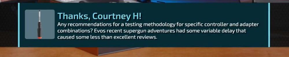 Any recommendations for a testing methodology for specific controller and adapter combinations? Evos recent supergun adventures had some variable delay that caused some less than excellent reviews.