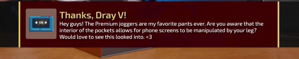 Hey guys! The Premium joggers are my favorite pants ever. Are you aware that the interior of the pockets allows for phone screens to be manipulated by your leg? Would love to see this looked into. <3
