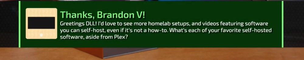 Greetings DLL! I'd love to see more homelab setups, and videos featuring software you can self-host, even if it's not a how-to. What's each of your favorite self-hosted software, aside from Plex?