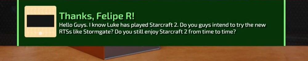 Hello Guys. I know Luke has played Starcraft 2. Do you guys intend to try the new RTSs like Stormgate? Do you still enjoy Starcraft 2 from time to time?