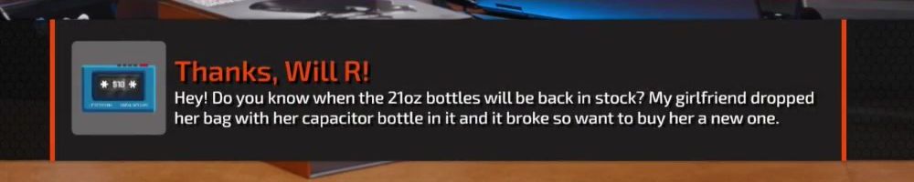 Hey! Do you know when the 21oz bottles will be back in stock? My girlfriend dropped her bag with her capacitor bottle in it and it broke so want to buy her a new one.