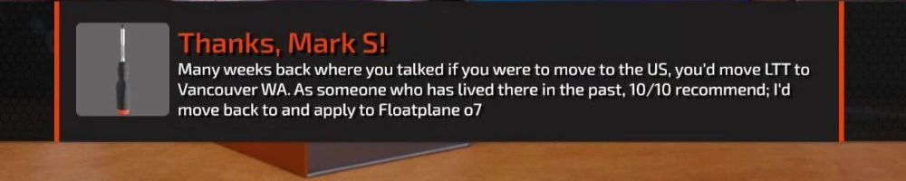 Many weeks back where you talked if you were to move to the US, you'd move LTT to Vancouver WA. As someone who has lived there in the past, 10/10 recommend; I'd move back to and apply to Floatplane 07