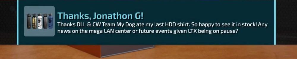 Thanks DLL & CW Team My Dog ate my last HDD shirt. So happy to see it in stock! Any news on the mega LAN center or future events given LTX being on pause?