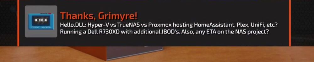 Hello.DLL: Hyper-V vs TrueNAS vs Proxmox hosting HomeAssistant, Plex, UniFi, etc?