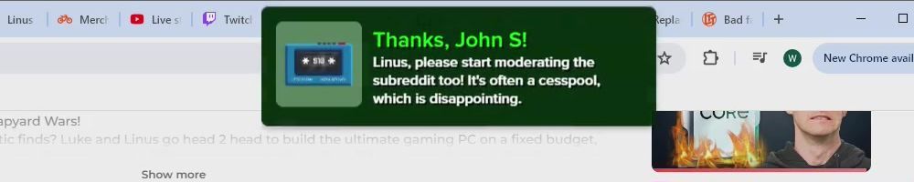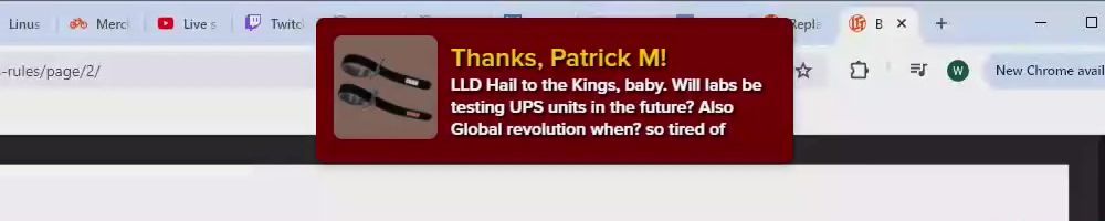 Hint: Use CTRL + F to search messages in this show, or use Whenplane's WAN Show Search tool to search for messages in all shows.