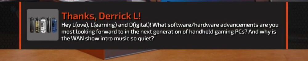 Hey L(ove), L(earning) and D(igital)! What software/hardware advancements are you most looking forward to in the next generation of handheld gaming PCs? And why is the WAN show intro music so quiet?