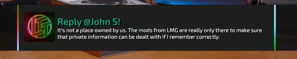 It's not a place owned by us. The mods from LMG are really only there to make sure that private information can be dealt with if I remember correctly.