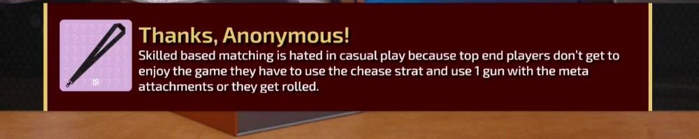 Skilled based matching is hated in casual play because top end players don't get to enjoy the game they have to use the chease strat and use 1 gun with the meta attachments or they get rolled.